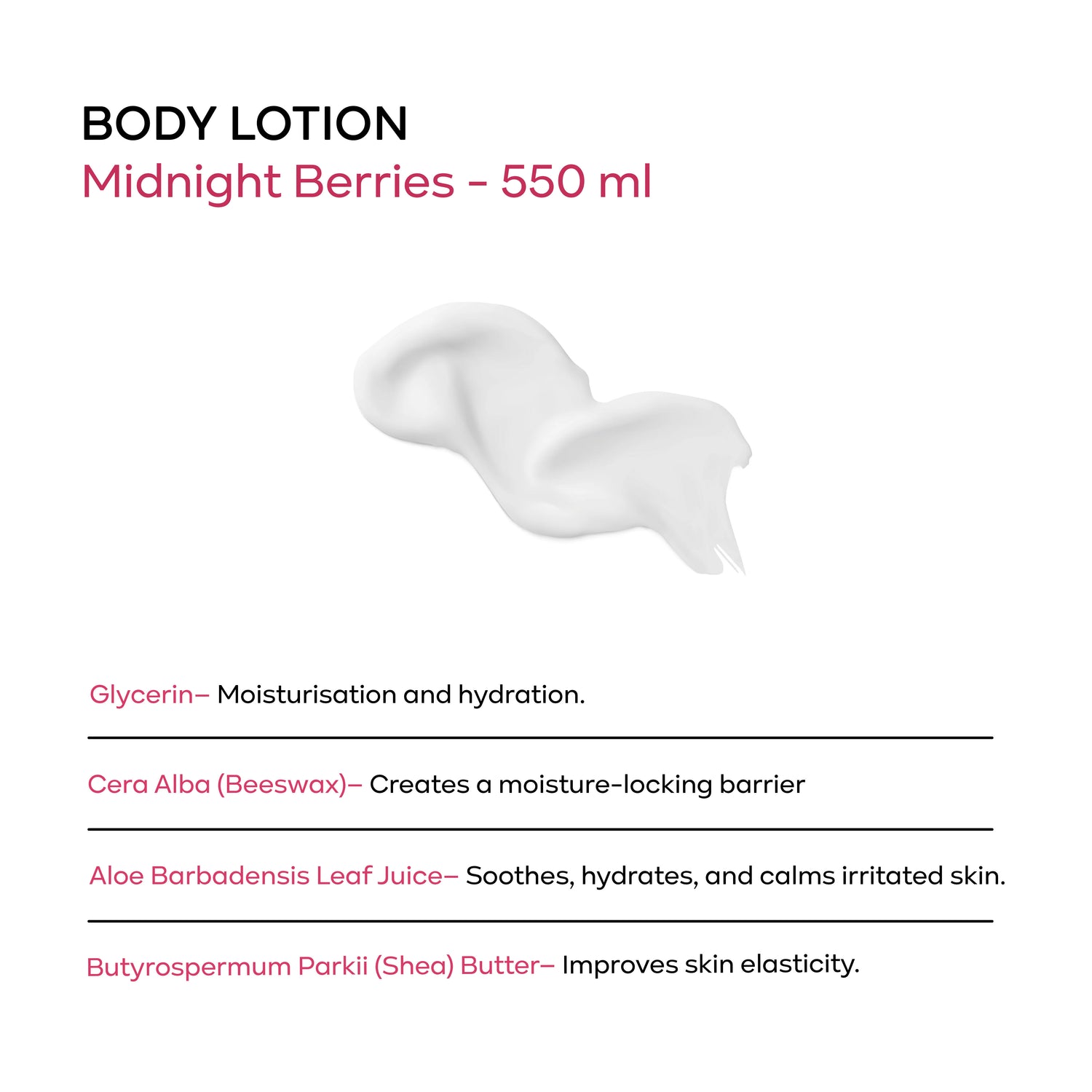 •  Glycerin – Attracts and retains moisture for long-lasting hydration