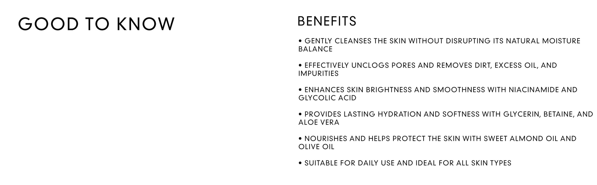 • Brightens and smooths skin with niacinamide and glycolic acid