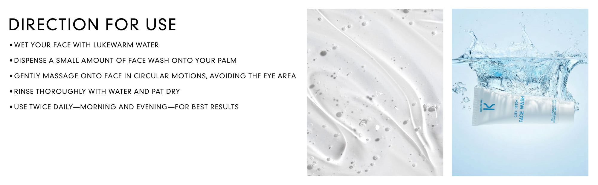 • Dispense a small amount of face wash onto your palm